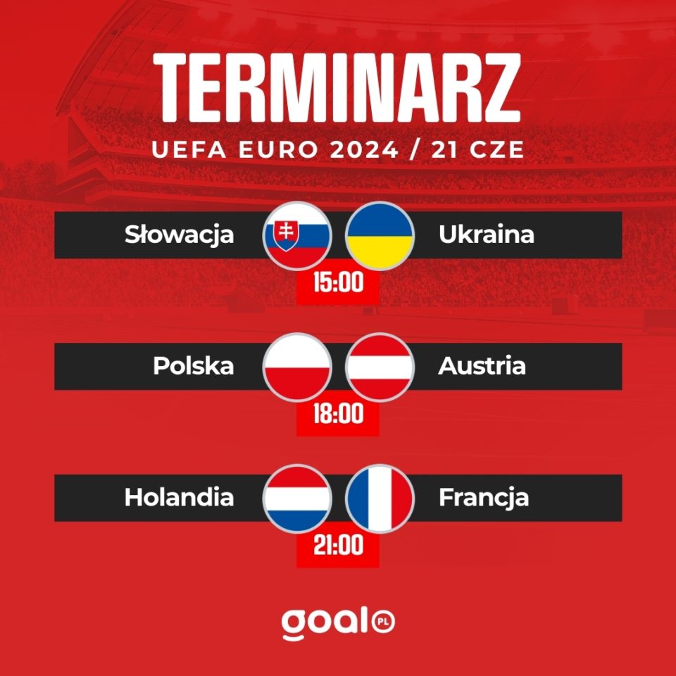 Zanim reprezentacja Polski rozegra swój mecz z Austrią, odbędzie się rywalizacja Słowacji z Ukrainą. Natomiast bezpośrednio po spotkaniu biało-czerwonych zostanie rozegrany drugi mecz w naszej grupie. W środowym hicie dnia zmierzy się Francja z Holandią.