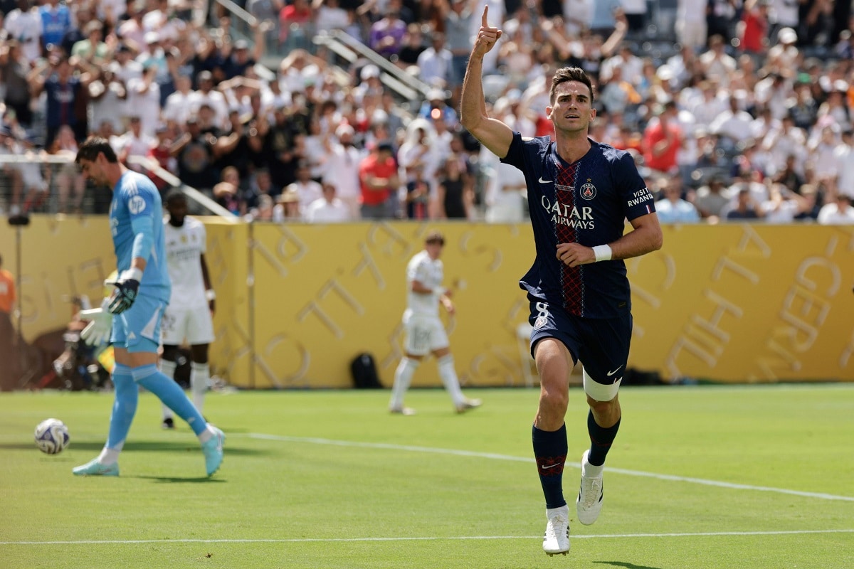 Już w 6. minucie Thibaut Courtois musiał sięgać do siatki. Raul Asencio fatalnie skiksował we własnej szesnastce – piłkę przejął Ousmane Dembele, który był faulowany przez golkipera Lo Blancos. Futbolówka dotarła do Fabiana Ruiza, a ten skierował ją do bramki.