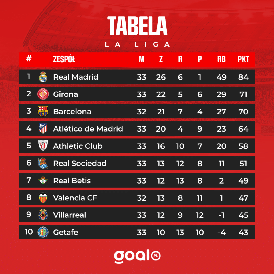 20:22 – Tabela ligowa La Liga