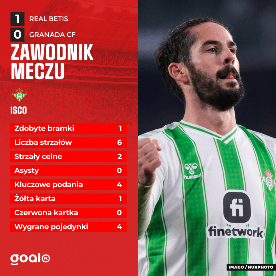 Real Betis w sobotę wieczorem na Estadio Benito Villamarin podejmował Granadę w spotkaniu 20. kolejki La Liga. Najlepszym piłkarzem tego meczu został wybrany Isco, który strzelił zwycięskiego gola. Dla 38-krotnego reprezentanta Hiszpanii to już dwunasta nagroda MVP w trwającym sezonie.