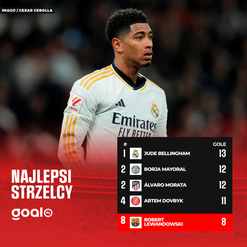 Najlepsi strzelcy La Liga: Bellingham na czele, Lewy daleko w tyle
