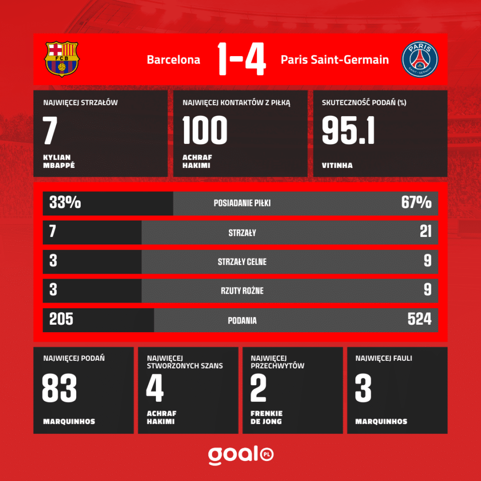 Koniec meczu! Paris Saint-Germain 4:1 FC Barcelona