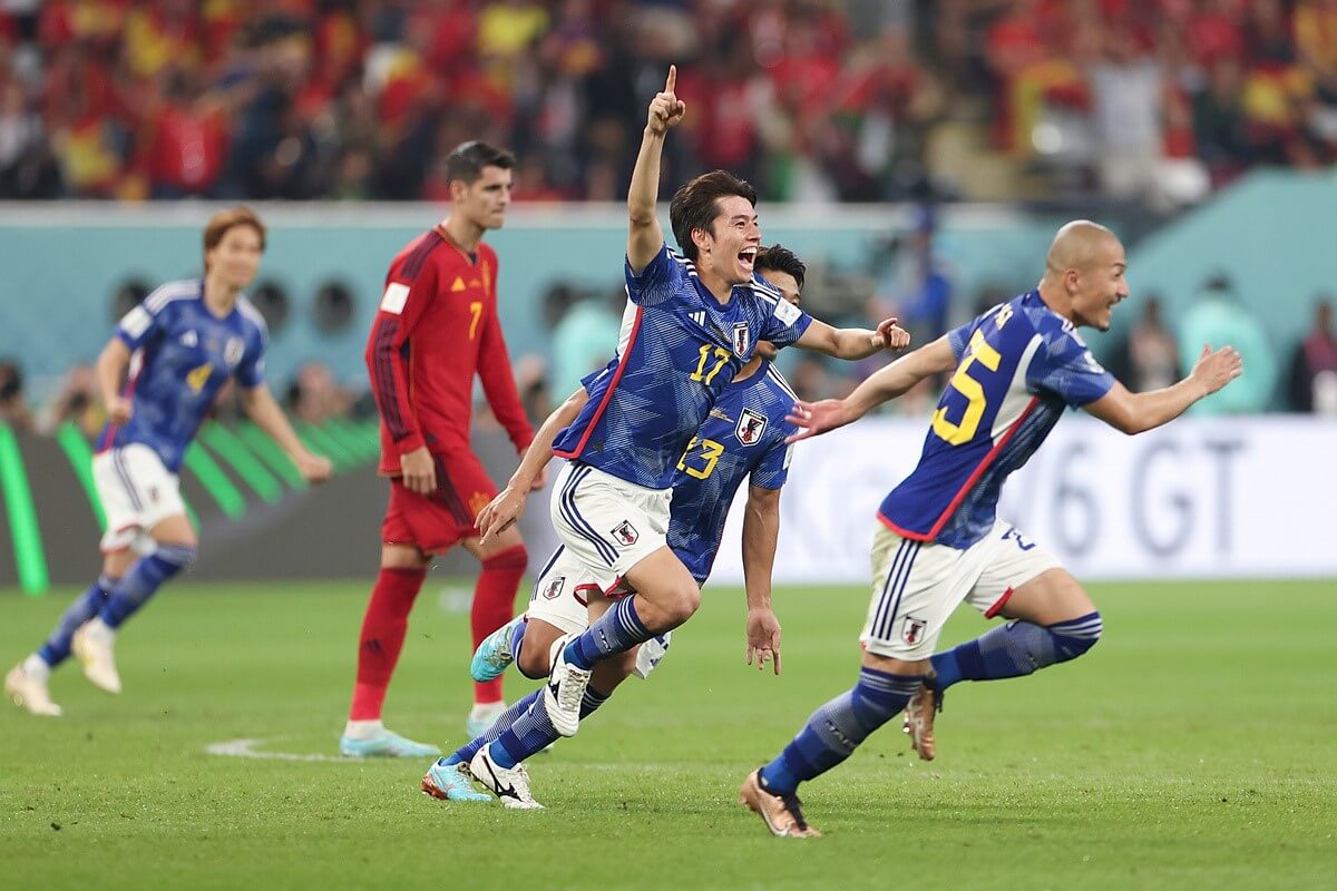 Po zmianie stron Japonia zszokowała piłkarski świata po raz drugi. Azjaci tak jak przeciwko Niemcom, odwrócili losy spotkania ze stanu 0:1 na 2:1. Wszystko to zajęło sześć minut drugiej połowy. Tym razem futbolówkę dała sobie zabrać Hiszpania. Niedługo później skutecznie z dystansu przymierzył Ritsu Doan. Więcej kontrowersji było przy drugim golu dla Japończyków. Sędziowie nie mieli bowiem pewności, czy piłka pozostała w boisku, gdy z linii końcowej zagrywał ją Kaoru Mitoma, a bramkę zdobywał Kaoru Mitoma. Finalnie trafienie zostało uznane. Hiszpania była zatem na drugim miejscu, chociaż przez moment znajdowała się poza turniejem. Powodem było prowadzenie Kostaryki w starciu z Niemcami. Nasi zachodni sąsiedzi ostatecznie wygrali, a mimo tego odpadli po fazie grupowej. Powodem była wygrana Japonii, która zajęła pierwsze miejsce w grupie E. Hiszpania zakończyła rywalizację na drugiej lokacie.