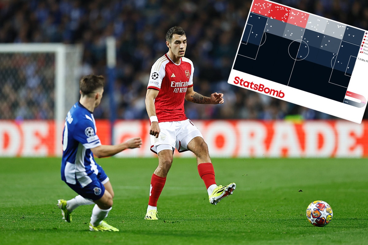 Te jednak najbardziej zaburzone zostały przez świetną, agresywną defensywę Porto. Gdy ustawiali się bez piłki na połowie przeciwnika, to blisko ustawiona trójka ofensywna blokowała większość możliwości wgrania w środek. Gdy Arsenal grał do boku, do skrzydłowych, to tam zaczynała się praca gospodarzy bez piłki: byli oni agresywni aż do przesady, stąd popełniane faule, lecz nie dawali Martinellemu czy Sace czasu na rozpędzenie się lub wejście w drybling. Brazylijczyk miał aż dziewięć z czternastu prób całej drużyny, ale tylko trzy udane. Anglika rywale ograniczyli do jednego dryblingu. W tej sytuacji nie pomagało nawet najlepsze, ale też różnorodne rozegranie – gdy White zostawał na boku.