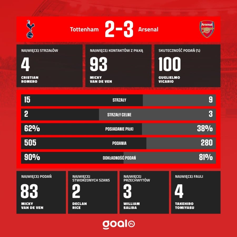 Arsenal zdaje się być nieuchronny. Znów, bo przecież podobnie było w poprzednim sezonie. Rok temu z Tottenhamem w dwudziestej kolejce też nie musieli dominować, by z terenu rywali wywieźć zaskakująco komfortowe zwycięstwo (2:0). To osiągnięte w niedzielę (3:2) może z racji wyniku wyglądać na mniej przyjemne, lecz poszczególne wyniki z korzyścią dla gospodarzy – posiadania piłki, goli oczekiwanych, strzałów, wykonanych podań – będą mylące. A różnica wynikała już z celów z jakimi obie drużyny pojawiły się na Tottenham Hotspur Stadium.
