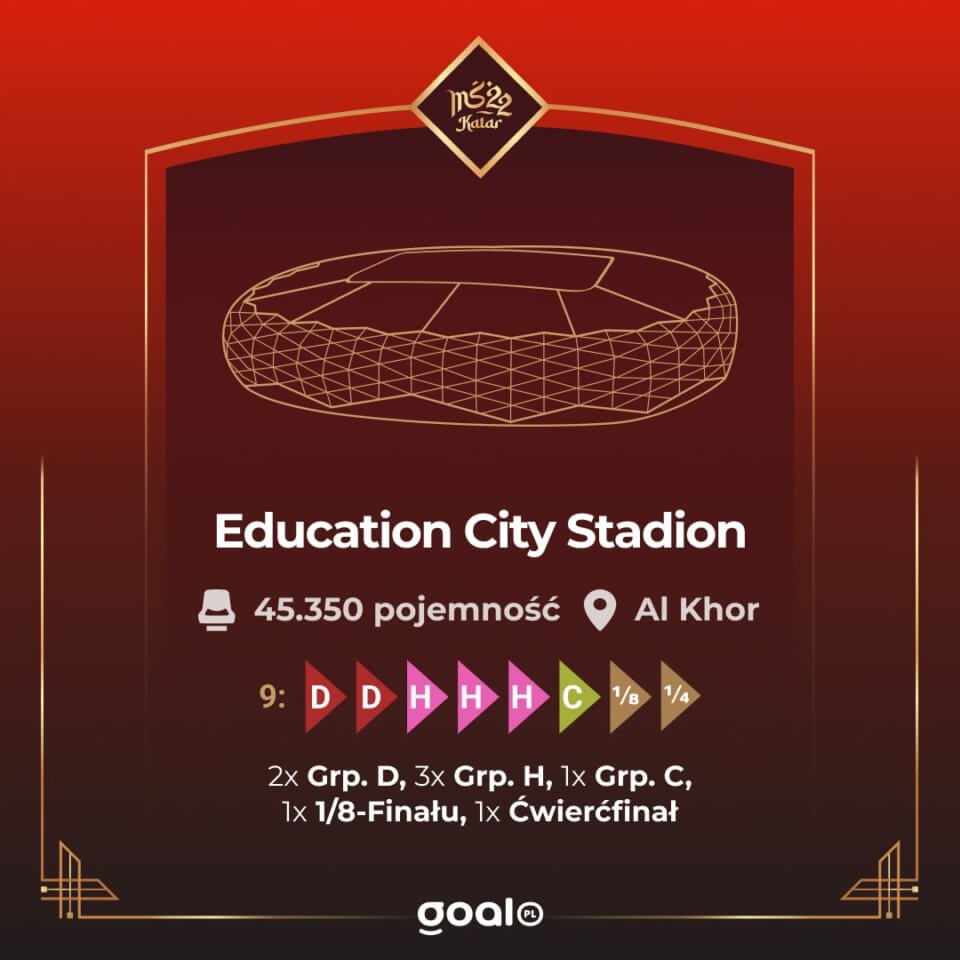 Na murawie Education City Stadium rozgrywanych będzie osiem spotkań nadchodzącego mundialu: sześć fazie grupowej, jeden mecz 1/8 finału oraz jeden ćwierćfinał.