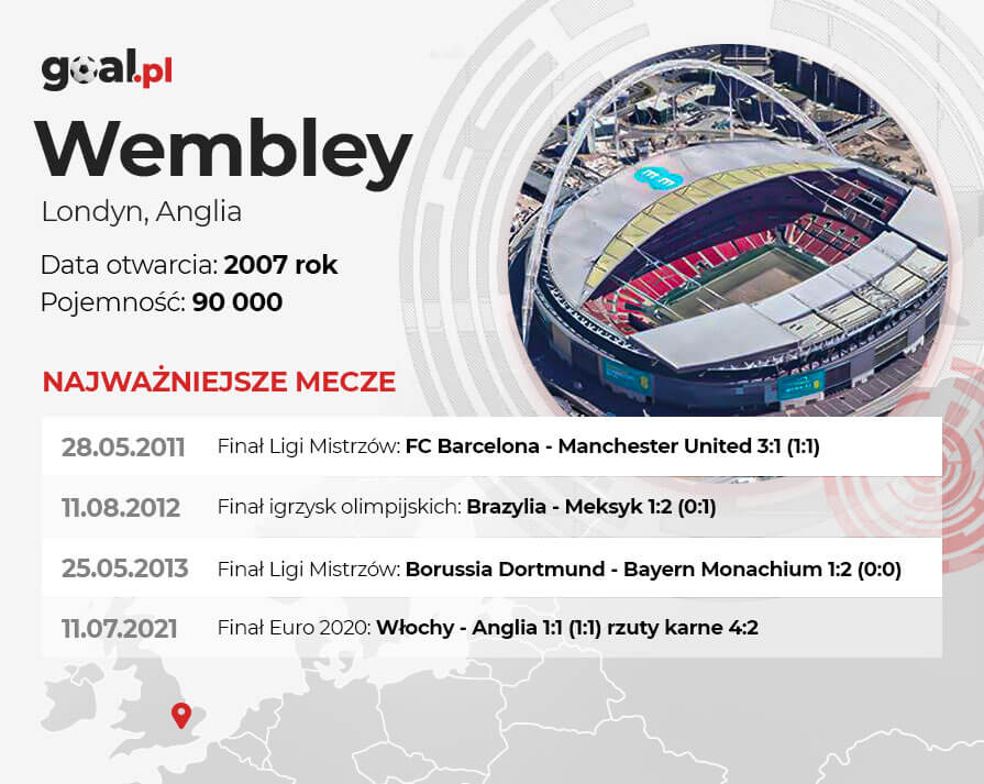 Stadion Wembley ma bogatą historię, choć trzeba podzielić ją na dwa etapy. Pierwszy od 1923 roku i drugi od 2007 roku, kiedy nastąpiło otwarcie „nowego Wembley”. Wcześniejszy obiekt był kultowy, ale zastąpił go piękny, nowoczesny, na którym w kilkanaście lat przeprowadzono wielkie piłkarskie imprezy, ale także koncerty muzyczne. Londyński gigant, który może pomieścić nawet 90 tysięcy widzów, był gospodarzem dwóch finałów Ligi Mistrzów, a także półfinałów i finału Euro 2020.