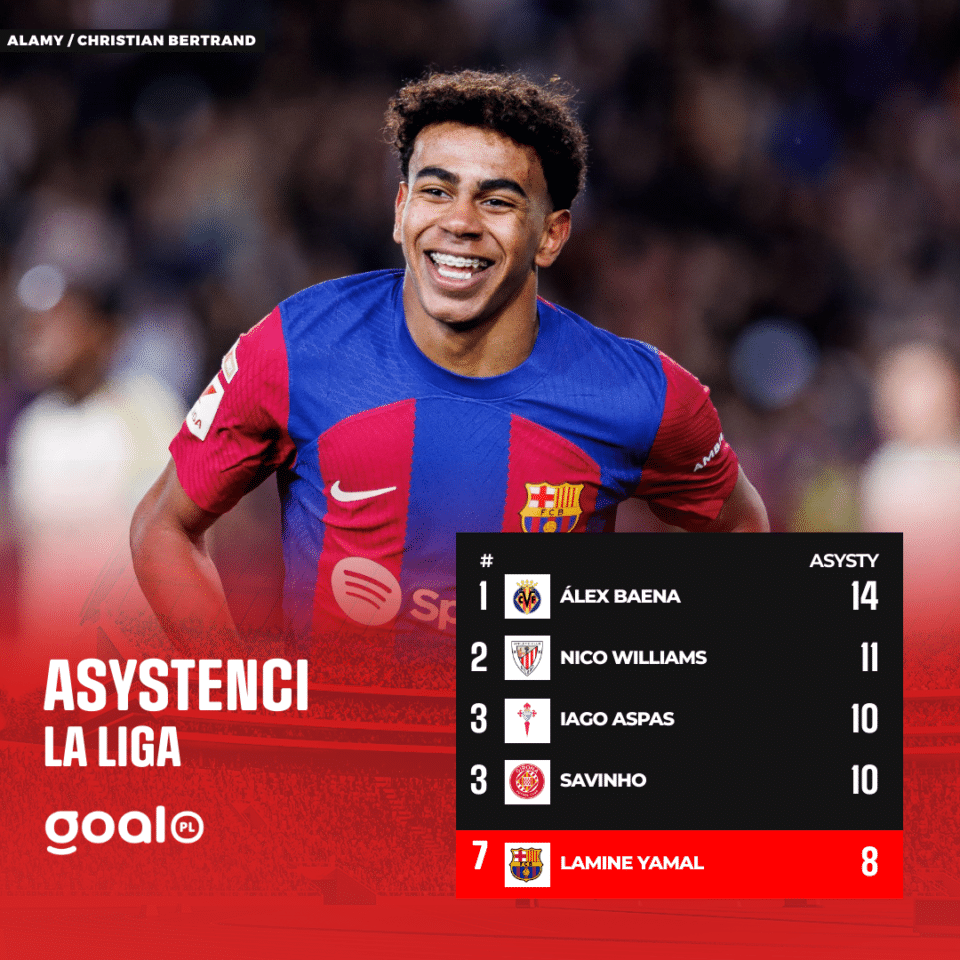 Jedna z najważniejszych postaci w ofensywie Barcelony w minionych miesiącach. Młody napastnik fantastycznie odnalazł się w seniorskiej piłce, co potwierdzają jego statystyki – Lamine Yamal rozegrał 50 meczów, zdobył 7 goli i zanotował 10 asyst. Przez chwilę mówiło się nawet, że PSG jest gotowe wyłożyć na niego aż 200 milionów euro.
