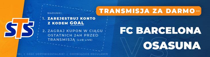 Mecz Barcelona – Osasuna rozegrany zostanie we wtorek (2 maja) o godzinie 19:30. Z bezpłatnej transmisji można skorzystać w usłudze STS TV po podaniu kodu promocyjnego GOAL. Z kolei w telewizji mecz obejrzymy na kanale CANAL+ Sport.