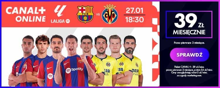 Spotkanie Barcelona – Villarreal odbędzie się w sobotę (27 stycznia) o godzinie 18:30. Mecz „na żywo” będzie można oglądać na kanale CANAL+ Sport.