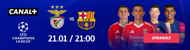 Spotkanie Benfica – Barcelona rozegrany zostanie we wtorek (21 stycznia) o godzinie 21:00. W telewizji transmisja z tego meczu dostępna będzie na kanale CANAL+ Extra 1. Rywalizację skomentują Michał Mitrut i Tomasz Ćwiąkała.
