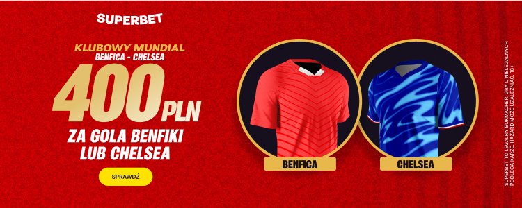 Przy okazji tego spotkania można skorzystać ze specjalnej promocji Superbet, który oferuje możliwość postawienia zakładu na choćby jednego gola Benfiki Lizbona lub Chelsea w sobotnim meczu po kursie 200.00. Stawiając taki kupon za jedynie 2 zł możesz zgarnąć aż 400 zł bonusu. Poniżej wyjaśniamy, krok po kroku, jak aktywować ofertę: