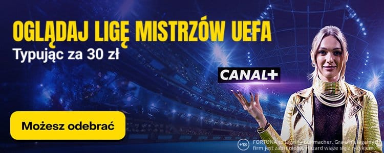 Transmisja z wtorkowego spotkania naturalnie dostępna będzie również za pośrednictwem internetu. Spotkanie będzie można obejrzeć na platformie CANAL+ online, do której dostęp można uzyskać teraz na 30 dni za darmo. Wystarczy skorzystać z atrakcyjnej promocji Fortuny, w której do odebrania jest voucher na dostęp do pakietu Super Sport, gwarantującego transmisje ze wszystkich meczów Ligi Mistrzów. Poniżej wyjaśniamy co trzeba zrobić.