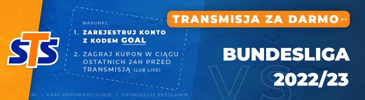 Jest jednak bardzo dobra alternatywa, która pozwala na oglądanie meczów za darmo. Transmisje ze wszystkich meczów Bundesligi dla swoich klientów udostępnia bukmacher STS. Wystarczy spełnić dwa proste warunki. Pierwszym jest zarejestrowanie konta z kodem promocyjnym GOAL, a drugim zagranie 24h przed rozpoczęciem interesującego nas meczu dowolnego kuponu.