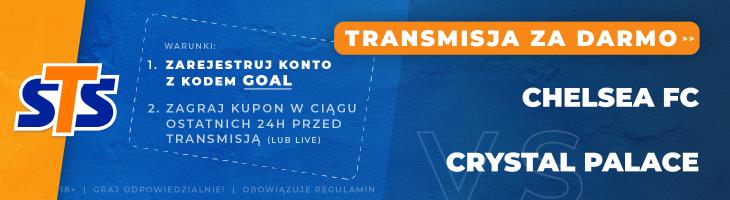 Pojedynek Chelsea z Crystal Palace będzie można obejrzeć na internetowej stronie bukmachera STS zakłady bukmacherskie i to zupełnie za darmo. Wystarczy spełnić dwa poniższe warunki.