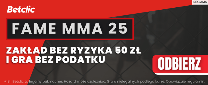 Walki Fame MMA 25 obstawisz tylko w Betclic. Odbierz zakład bez ryzyka i graj bez podatku.