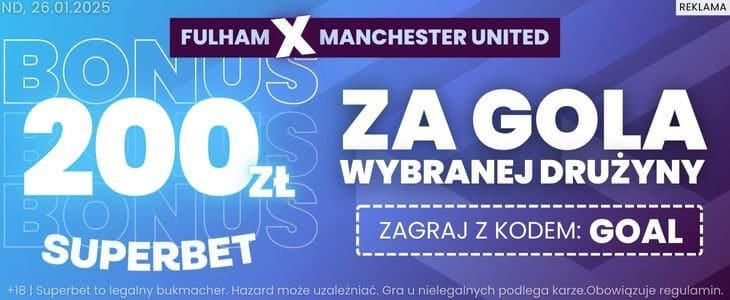 - Postaw pierwszy po założeniu konta zakład pojedynczy za min. 2 zł na gola Fulham lub gola Man Utd w niedzielnym meczu