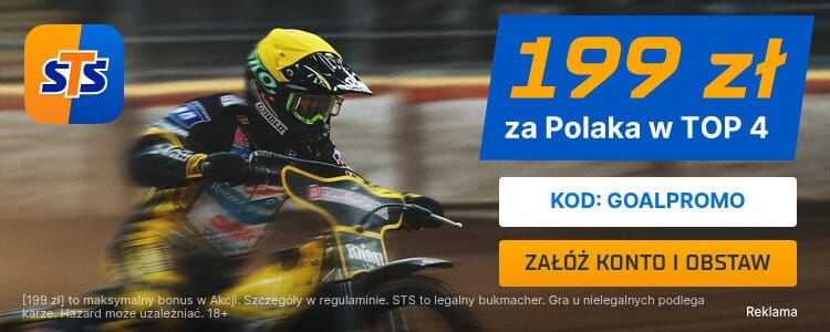 Przy okazji sobotniej rywalizacji w Grand Prix można skorzystać ze świetnej promocji STS i zgarnąć extra bonus za wytypowanie polskiego zawodnika w TOP4 zawodów. Do skorzystania z oferty uprawnia kod promocyjny GOALPROMO, który należy podać podczas rejestracji w STS.