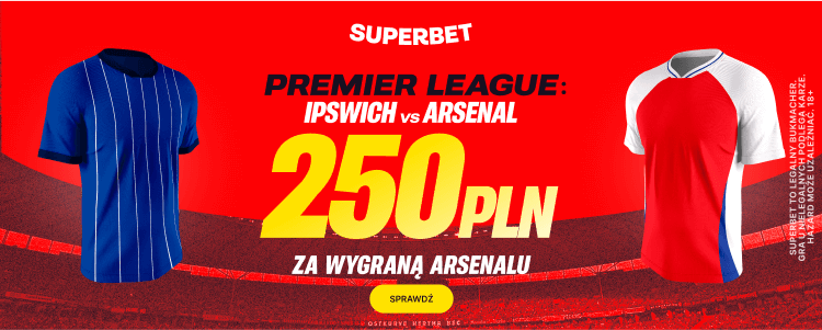 - Jeżeli Arsenal odniesie zwycięstwo, otrzymasz od Superbet bonus 250 zł