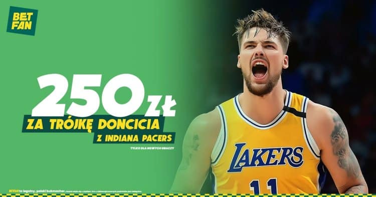 Przy okazji sobotniego meczu możesz również skorzystać z bardzo atrakcyjnej promocji BETFAN. Możesz zgarnąć extra bonus 250 zł za celny rzut Luki Doncicia za trzy punkty. Co trzeba zrobić, aby skorzystać z oferty?