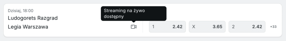 Mecz Legia – Ludogorec będzie transmitowany w usłudze Superbet TV z kodem GOAL oraz na bułgarskim kanale Denim Sport.