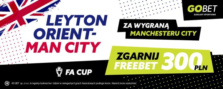 Niezwykle atrakcyjną ofertę na sobotni mecz przygotował bukmacher GOBET. Rejestrując konto z kodem promocyjnym GOAL będziesz mógł postawić zakład na zwycięstwo Manchesteru City nad Leyton Orient po zwiększonym kursie 300.00. Zatem stawiając zakład za 1 złoty możesz zgarnąć freebet o wartości 300 złotych. Co trzeba zrobić?