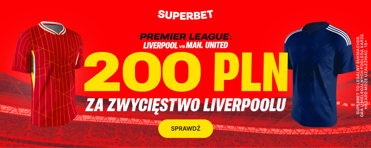 Superbet przygotował na niedzielny klasyk specjalną ofertę, dzięki której można postawić na wygraną Liverpoolu po kursie 100. Dzięki tej ofercie stawiając tylko 2 zł można zgarnąć 200 zł bonusu. Jak skorzystać z tej oferty?