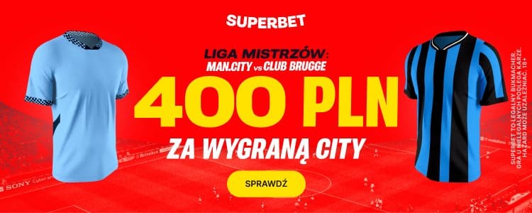 Przy okazji tego meczu warto także zwrócić uwagę na ofertę Superbet, który oferuje możliwość postawienia zakładu na wygraną Manchesteru City po kursie 200. Stawiając taki zakład za 2 zł, można zgarnąć 400 zł bonusu. Poniżej wyjaśniamy krok po kroku co trzeba zrobić.