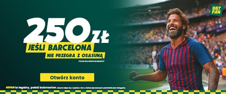 - Jeżeli Barcelona nie przegra z Osasuną, otrzymasz od BETFAN freebet o wartości 250 zł