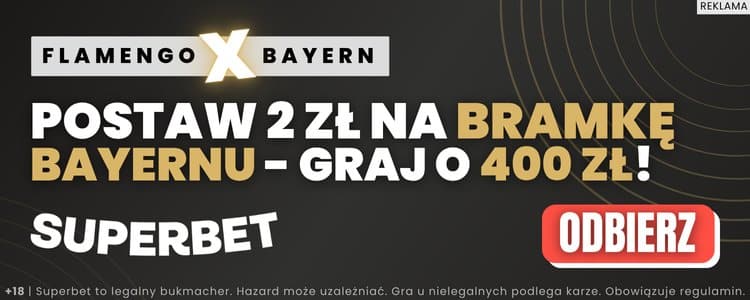 Aż 400 zł bonusu można zgarnąć stawiając tylko 2 zł na choćby jednego gola Bayernu Monachium w niedzielnym meczu. Taką ofertę przygotował Superbet dla osób, które założą konto z kodem GOAL.