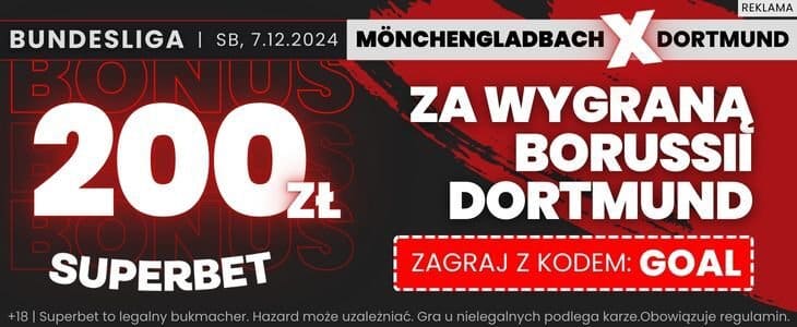 - Jeżeli Borussia Dortmund wygra, otrzymasz od Superbet bonus 200 zł.