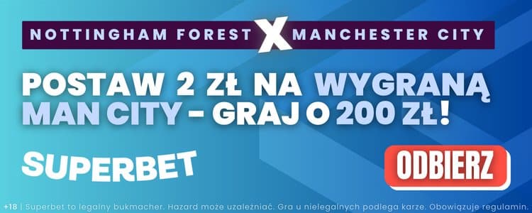 - Postaw za min. 2 zł pierwszy kupon pojedynczy, na którym znajdzie się typ na wygraną Manchesteru City w meczu z Nottingham