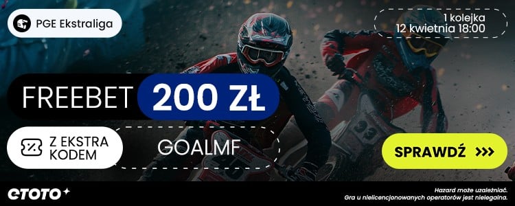 Ciekawą promocję na start żużlowej Ekstraligi przygotował bukmacher ETOTO. Zakładając konto z kodem promocyjnym GOALMF możesz otrzymać freebet 200 zł za poprawne wytypowanie zwycięzcy dowolnego meczu 1. kolejki. Poniżej wyjaśniamy jak skorzystać z oferty.