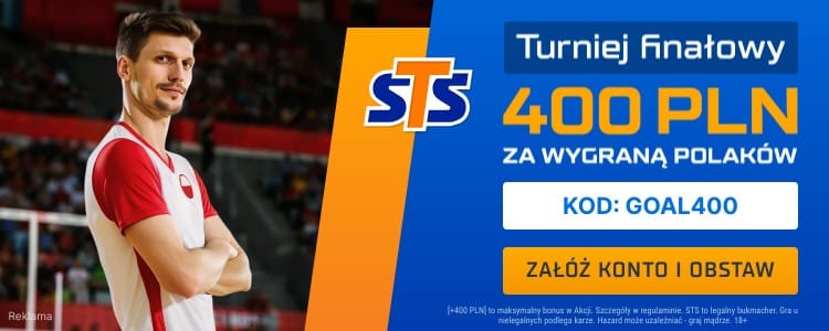 Przy okazji tego meczu warto zwrócić uwagę na promocję, jaka przygotował STS. Bukmacher oferuje aż 400 zł BONUSU za trafiony typ na zwycięstwo Polski. Taki bonus można zgarnąć grając kupon już za zaledwie 2 zł. Z promocji można skorzystać zakładając konto z kodem promocyjnym GOAL400. Poniżej wyjaśniamy krok po kroku.