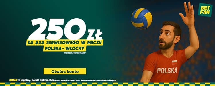 - Jeżeli w meczu Polska – Włochy będzie zdobyty punkt przez as serwisowy, w ciągu 24 godzin od zakończenia meczu otrzymasz freebet 250 zł