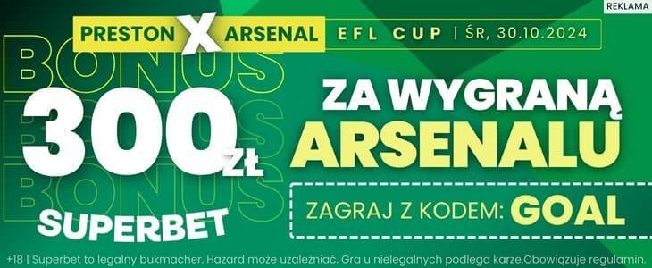 - Jeżeli Arsenal wygra, otrzymasz od Superbet bonus w wysokości 300 zł