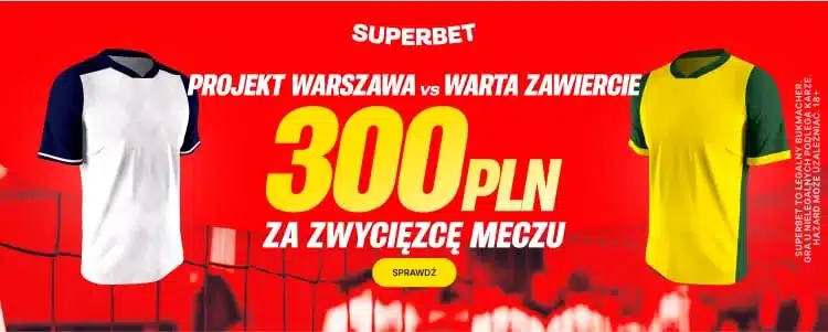 Bukmacher Superbet oferuje promocyjny kurs 150.00 na zwycięzcę meczu Projekt Warszawa – Warta Zawiercie. Oferta ma prosty regulamin i wystarczy spełnić kilka poniższych kroków: