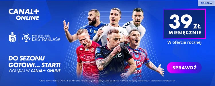 Starcie dziesiątej kolejki PKO Ekstraklasy można oglądać nie tylko w telewizji, ale też dzięki usłudze internetowej. Transmisja spotkania dostępna będzie również dla użytkowników CANAL+ online. Teraz dostęp do niej można uzyskać w promocyjnej cenie. W ofercie rocznej miesięczny koszt dostępu do pakietu ze wszystkimi kanałami CANAL+ wynosi tylko 39 zł, co pozwala w porównaniu do standardowej oferty zaoszczędzić 180 zł. Z oferty można skorzystać, rejestrując konto za pośrednictwem naszej strony.