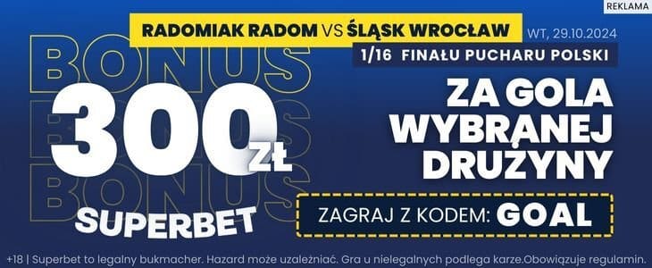 Bonus 300 zł za gola Radomiaka lub Śląska