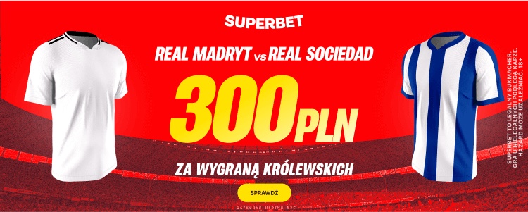 Superbet przygotował specjalną promocję na wtorkowe spotkanie, dzięki której zakład na wygraną Realu Madryt w podstawowym czasie gry możesz postawić po kursie 150. Wystarczy zarejestrować konto z kodem GOAL oraz spełnić proste warunki oferty, które w kilku punktach prezentujemy poniżej.