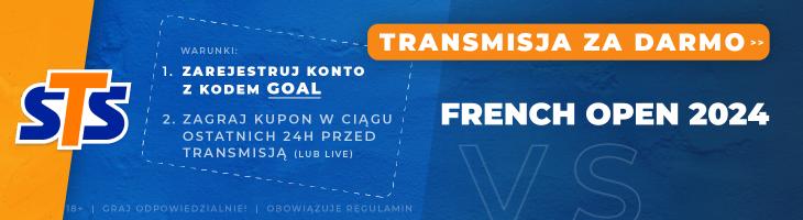 Mecze French Open można obejrzeć za darmo w usłudze STS TV z kodem promocyjnym GOAL.