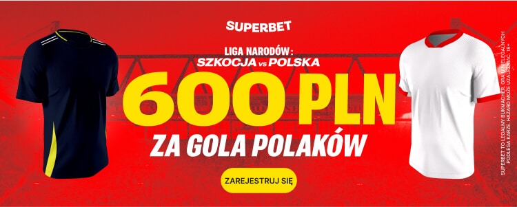 Przy okazji czwartkowego spotkania zwracamy uwagę na świetną ofertę Superbet. Bukmacher oferuje bowiem aż 600 zł extra bonusu za wytypowanie gola dla reprezentacji Polski. Z oferty można skorzystać zakładając konto w Superbet z kodem promocyjnym GOAL. Poniżej krok po kroku wyjaśniamy jak skorzystać z promocji.