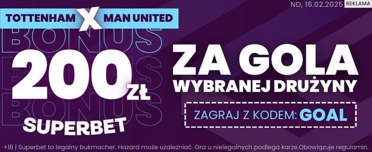 - Postaw pierwszy zakład pojedynczy za min. 2 zł na gola wybranej drużyny w meczu Tottenham – Man Utd