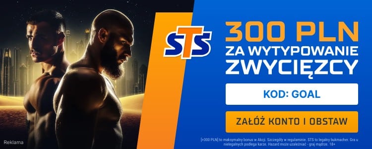 Przy okazji sobotniej walki warto zwrócić uwagę na świetną ofertę jaką przygotował STS. Podając kod promocyjny GOAL podczas rejestracji w STS otrzymasz możliwość zgarnięcia bonusu 300 zł za wytypowanie zwycięzcy walki Usyk – Fury. Poniżej dokładnie wyjaśniam jak skorzystać z tej promocji.