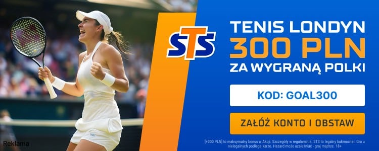 STS przygotował na Wimbledon świetną promocję. Oferuje aż 300 zł bonusu za wytypowanie zwycięstwa jednego z reprezentantów Polski w dowolnym meczu turnieju. Z oferty możesz skorzystać zakładając konto w STS z kodem promocyjnym GOAL300. Poniżej wyjaśniamy krok po kroku co trzeba zrobić.