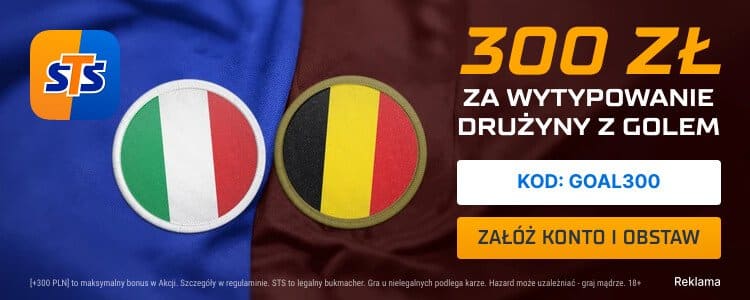 Przy okazji tego spotkania warto zwrócić uwagę na ofertę STS. Bukmacher daje de facto możliwość postawienia zakładu na choćby jedną bramkę Włoch lub Belgii po kursie 150. Grając za zaledwie 2 zł można zgarnąć aż 300 zł extra bonusu. Co trzeba zrobić?