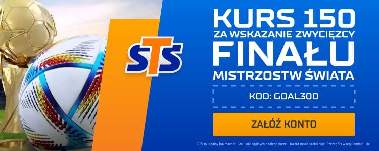 W STS możecie postawić na zwycięzcę (Argentynę lub Francję) niedzielnego finału mistrzostw świata po kursie 150.00! Aby skorzystać z oferty należy zarejestrować konto w STS z kodem promocyjnym GOAL 300. Poniżej wyjaśniamy krok po kroku jak skorzystać z promocji.