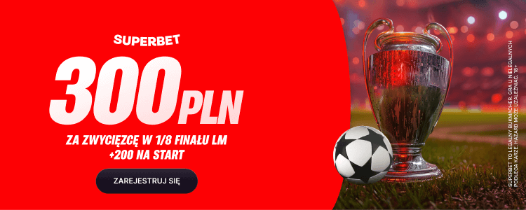 Superbet przygotował na rewanżowe spotkania 1/8 finału Ligi Mistrzów specjalną ofertę, dzięki której stawiając tylko 2 zł na zwycięzcę dowolnego meczu można otrzymać bonus 300 zł. Poniżej wyjaśniamy krok po kroku jak skorzystać z tej oferty przy okazji meczu Bayer – Bayern.
