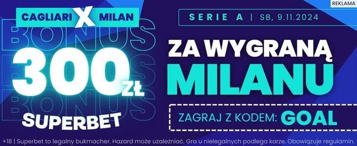 - Jeżeli Milan wygra spotkanie, otrzymasz od Superbet bonus 300 zł