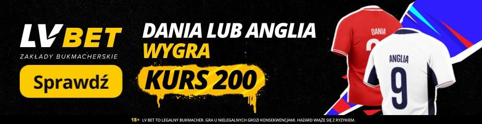 Warto także zwrócić uwagę na ofertę LVBET. Bukmacher ten nowym klientom daje możliwość postawienia zakładu na wygraną Danii lub Anglii po kursie 200.00. Aby skorzystać z promocji należy zarejestrować konto w LVBET z kodem promocyjnym GOAL.